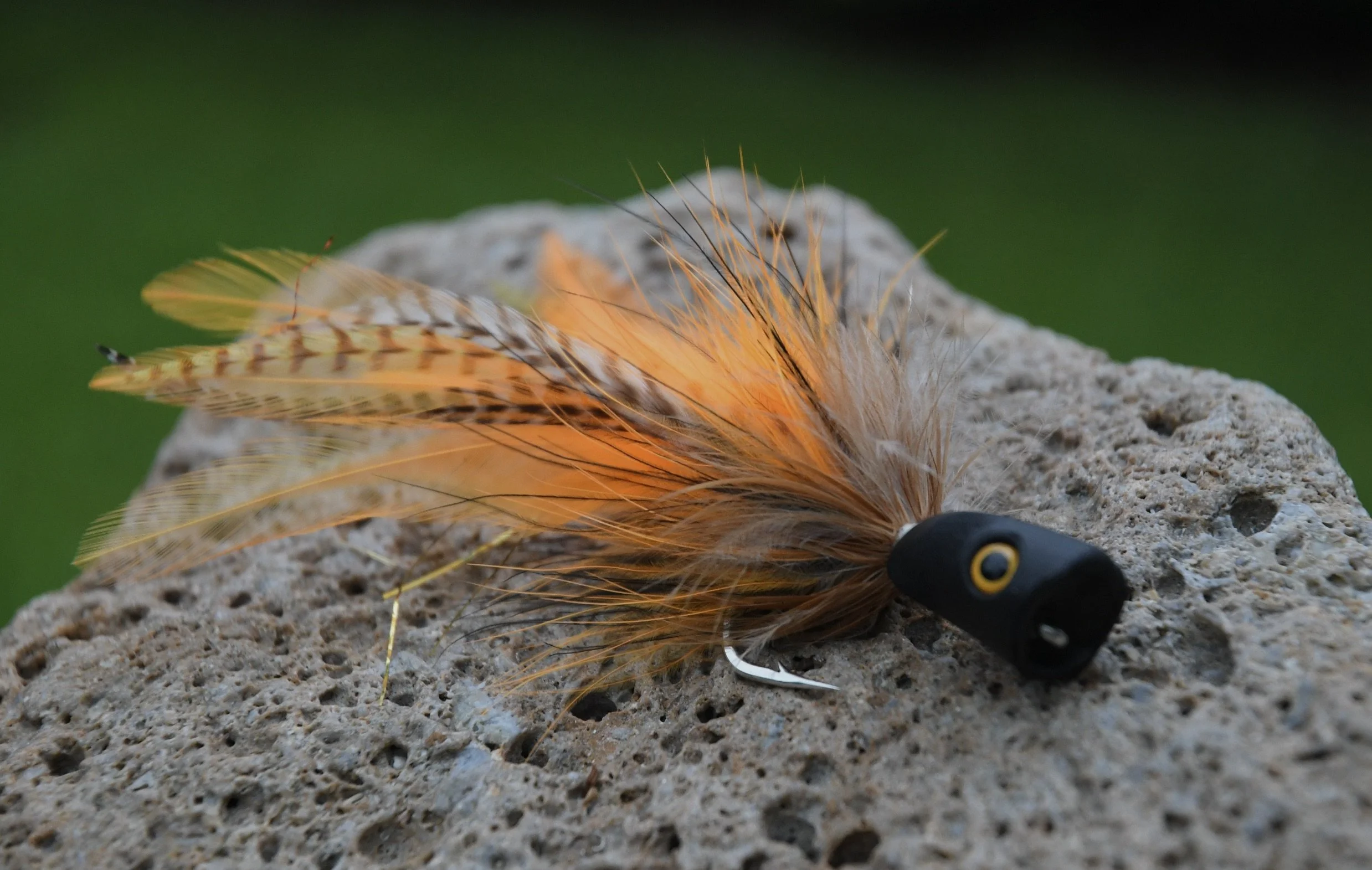 Poppers are a great pattern to have in the box in many environments. If you are looking for a top water presentation that can help draw that reaction strike this is the fly for you. Fly is about 6" long and is tied on a 4/0 sl12s hook.